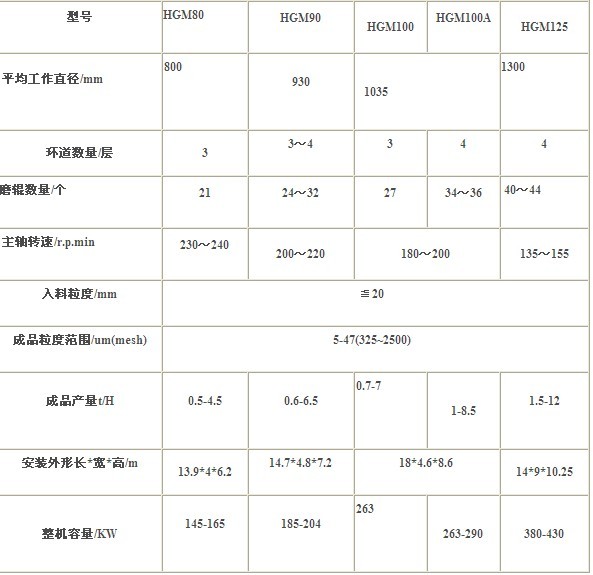 HGM三環(huán)中速超細(xì)磨粉機(jī):加工細(xì)度在325-3000目之間(細(xì)度可以任意調(diào)節(jié))。